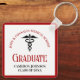 Este moderno chaveiro de graduação em medicina personalizada, vermelho e preto, apresenta tipografia formal para uma classe de formando de 2024. Personalize com o seu ano de graduação sob o símbolo caduceus para uma enfermeira personalizada ou presente médico excelente.