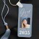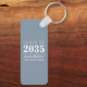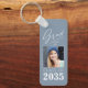 Um moderno, moderno, de dois lados, alumínio resistente, chaveiro de Formando - teclado com sua foto na frente. Todos Personalizados, com "Formando" em um roteiro elegante de tinta com "Classe de, Ano, Nome da Escola e Seu Nome" em tipografia moderna. A foto do formando é acentuada articamente com uma delicada placa de gradiente. O texto e as guarnições são brancos com o fundo em uma cor azul empoeirada. Se desejar, edite facilmente a cor de fundo na cor primária da sua escola. A ideia perfeita de presente de graduação para estudantes de segundo grau, faculdade e universidade.