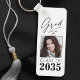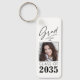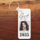 Uma moda, dois novos lados, alumínio resistente, chaveiro de Formando - teclado com sua foto na frente. Todos Personalizados, com "Formando" em um roteiro elegante de tinta com "Classe de, Ano, Nome da Escola e Seu Nome" em tipografia moderna. A foto do formando é acentuada articamente com uma delicada placa de gradiente. O texto e o trecho são preto-e-branco com fundo em branco. Se desejar, edite facilmente a cor de fundo na cor primária da sua escola. A ideia perfeita de presente de graduação para estudantes de segundo grau, faculdade e universidade.
