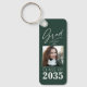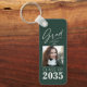 Uma moda, dois novos lados, alumínio resistente, chaveiro de Formando - teclado com sua foto na frente. Todos Personalizados, com "Formando" em um roteiro elegante de tinta com "Classe de, Ano, Nome da Escola e Seu Nome" em tipografia moderna. A foto do formando é acentuada articamente com uma delicada placa de gradiente. O texto e as guarnições são brancos, com o fundo numa cor verde-menta moderna. Se desejar, edite facilmente a cor de fundo na cor primária da sua escola. A ideia perfeita de presente de graduação para estudantes de segundo grau, faculdade e universidade.
