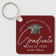 Este chaveiro de formando personalizado moderno e burgundy apresenta seu segundo grau ou nome de faculdade para a classe de 2025. Personalize com o seu ano de graduação sob o roteiro de chic manuscrito e boné de formando para um presente de cadeia de chave de graduação personalizada do excelente.