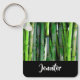 Uma cadeia-chave com um tema asiático. Uma fotografia de uma fileira de caules verdes e amarelados de bambu.