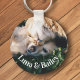 Este adorável chaveiro de animais de estimação apresenta duas das suas fotos favoritas com os seus nomes de animais de estimação escritos abaixo num clássico e simples tipo branco. A perfeita manutenção para os donos de gatos e cães!