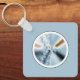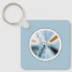 Este chaveiro redondo apresenta uma arte fractal azul-clara em um quadro redondo.