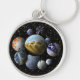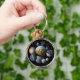 Planetas fractais maravilhosamente desenhados cercados por estrelas suspensas no espaço, nas principais cores de ouro e azul.