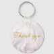 Na moda branco de fundo de seda com fontes ouros dizendo Obrigado... a design de casamento de Alma Wad.
