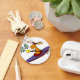 O alce engraçado está vestindo um boné de bola vermelha e está caiaque vermelho e azul neste legal design de arte original.