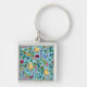 Chaveiro Galinhas e flores silvestres em azul-bebê
