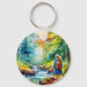 Esta é uma imagem de aquarela de uma menina caminhando perto de um riacho em uma floresta. Ele tem cores lindas e pareceria um excelente em uma mesa ou em qualquer lugar que você quiser. Só de olhar para ele me ajuda a me sentir mais à vontade.