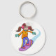 Uma garota se apressando em uma ladeira. Esta design parece realmente eficaz nestes Chaveiro