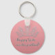 Chaveiro cor-de-rosa personalizado com tiara prateada e texto que diz: "Meninas felizes são as Mais Bonitas"
