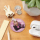 Gatinho siberiano maravilhoso em saco de brinde com lingerie feminina e fundo lilático, pintado pela artista Maryline Cazenave.