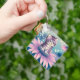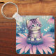 Um chavão com um gatinho sorridente, sentado numa flor roxa