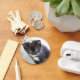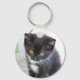 Foto de retrato bonito de um gatinho preto e branco liso olhando para baixo.