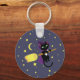 Um gato preto voa durante a noite na vassoura de uma bruxa enquanto veste o chapéu dela! Esta design é perfeita para decorações de Halloween! Personalize-o ou personalize-o adicionando seu próprio texto ou imagens.