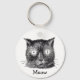 Esta cadeia-chave estiva uma imagem vintage de um gato preto e branco com relógios para os olhos. Lê o Meow ou mude para o nome ou as palavras da sua escolha.