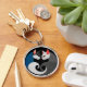 Representação artística de dois gatos frente a frente, entrelaçados em um design circular. Os gatos são representados em cores negras e brancas contrastantes, com sotaques vermelhos vibrantes nos ouvidos e olhos. O fundo apresenta um gradiente de azul e preto, melhorando o contraste visual geral e a simetria da composição.