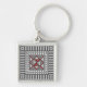 Esse quadrado concêntrico apresenta padrões geométricos simples em tons de cinza e vermelho com as cores nas camadas alternadas ao passar da vertical para a horizontal.