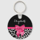 Um chaveiro feminino com um padrão de girafa preto-e-branco tenente e uma fita rosa-quente na moda amarrada em um arco bonito. Personalize este design de impressão de design chic adicionando o nome da sua adolescente. Imagem impressa plana, não arco real.