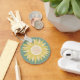 Um lindo girassol amarelo desenhado à mão sobre um fundo verde claro.