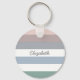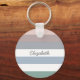 Chaveiro Girly Beige Blue Wide Stripes Horizontais Com Nome