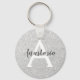 Garota e brilho prateado brilham o nome do monograma e o chaveiro inicial. Personalize com seu nome personalizado em cinzas e seu monograma inicial em branco. Você pode alterar a cor do texto, o estilo e o tamanho da fonte usando a opção personalizar.
