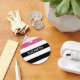 Personalize este moderno chaveiro de padrão horizontal preto e branco com uma faixa de brilho rosa-quente, adicionando o nome de qualquer garota feminina. Este padrão gráfico de tendência é perfeito para a moda quic. Imagem impressa plana, NÃO com brilho real.