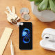 Luminous infinity symbol with glowing, beautiful, lushly blooming rose made of blue flames on black background.