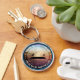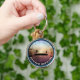 Design de golfe em disco criativo com silhueta de jogador colocando disco nas correntes de uma cesta.