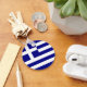 Bandeira da Grécia. A bandeira da Grécia (popularmente designada por "céu azul-branco" ou "azul-branco" e em grego: "υη" ou "α α" ou "ό ", oficialmente reconhecida pela Grécia como um dos seus símbolos nacionais, baseia-se em nove faixas horizontais iguais de azul alternadas de branco. Há um cantão azul no canto superior do assento, com uma cruz branca; a cruz simboliza o cristianismo ortodoxo oriental, a religião estabelecida das pessoas gregas de Grécias e de Chipre. De acordo com a tradição popular, as nove faixas representam os nove sílabas da frase "impressa ε gestação de ί α ή Θ υ θ ε " ("Liberdade ou Morte"), as cinco listras azuis para os sílabas "matingas de α" e as quatro listras brancas " ". Diz-se igualmente que as nove faixas representam as letras da palavra "liberdade" (grego: "ε" em língua grega: "30000000000000000000000000θυεί"). Há também uma teoria diferente, de que as nove listras simbolizam as nove musas, deusas da arte e da civilização.