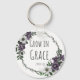 An original colored floral design by Cora Worthington featuring violets, primroses, and the popular verse 2 Peter 3:18, this keychain serves as an encouragement to Christians to keep growing in grace and knowledge of the Lord.