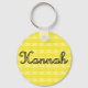 Chaveiro bonitinho em pequenos corações amarelos com o nome Hannah impresso nele.