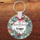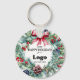 Custom "Happy Holidays" keychain for clients personalized with your business logo, the year, a big festive floral wreath, and an elegant red bow. Company promotional supplies for the Holidays, you can order in bulk for your employees or as branding and marketing supplies to promote your store to customers.