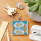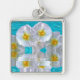Branco Hibiscus Grande Cor de Cheio Quadrado Premium, Impressão com Chaveiro de sangramento de cheio Silver Coloração Metal Charm & Ring UV Resistente e à Prova de Água Adicionar Fotos, Trabalho de arte e Texto Sem Ordem mínima