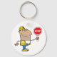 Um homem de pé segurando um sinal de stop para o trânsito direto. Esta design parece realmente eficaz nesta Chaveiro