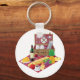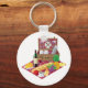 Uma cena piquenique com comida e uma cesta em um tapete. Esta design parece realmente eficaz nestes Chaveiro