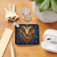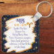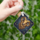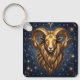 A mystical golden Ram Aries Astrology sign keychain with Aries dates and traits on the back, along with compatibility and other fun Aries facts.