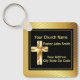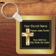 Classy e profissional dourado e preto Nome da sua Igreja chaveiros para os esforços de marketing e congregação da sua igreja. É projetado com um padrão metálico dourado elegante e uma borda preta moderna.