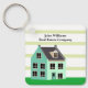 Chaveiro de uma empresa imobiliária personalizada para um corretor de imóveis dar aos clientes do comprador de casa. Use esses presentes modernos em casa verde como uma ferramenta de marketing para lembrar aos clientes que você está pronto para ajudá-los a procurar uma nova casa. Personalize o texto com suas próprias informações comerciais reais.