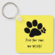 Mantenha suas patas longe das minhas chaves! é o texto arranhado embaixo da impressão de um gato poligílico. No verso há uma área branca para guardar as informações de contato personalizadas.