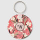 This lovely monogrammed keychain features a Japanese style floral print of dusty pink, light peach, garnet red, creamy white, and brown. Your monogram initial appears in a stylish typeface against a circle of peachy pink, bordered in black.