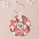 Chaveiro Japanese Floral in Salmon Pink White Red w Initial