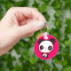 Kawaii panda vestindo arco de bolinhas vermelha.