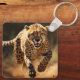 Esta cadeia-chave é mostrada no estilo quadrado com uma impressão de foto de um guepardo selvagem. Personalize este item ou comprar conforme mostrado. Imagem licenciada