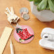 Gatinho preto e branco em botas de chuva bolinhas vermelha, com fundo cor-de-rosa, pintado pela artista Maryline Cazenave.