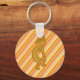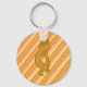 Essa chaveiro apresenta um ouro Kokopelli com flauta que é uma das imagens icônicas do deserto a sudoeste dos Estados Unidos. Este distinto Kokopelli destaca-se contra um fundo diagonal listrado de tons de terra laranja.