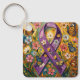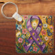 Uma linda chaveiro para um guerreiro Fibro. A frente tem uma linda fita roxa em estilo impasto, borboletas e flores. Uma fita de conscientização roxa pode representar Significados comuns da fita roxa: