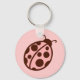 Uma ladybug cor-de-rosa e marrom é o ponto focal desta chaveiro. A design é de uma ilustração original.