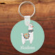 Chaveiro monograma com uma lama branca e bonita sobre fundo verde-menta. Personalize adicionando seu nome em uma fonte de script fofinha.