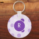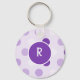 Um chaveiro com tema de bolinhas, este design apresenta bolinhas roxas e lavandas com um círculo monograma no centro. Um dos tipos, ordene o seu hoje! Trabalho de arte criado por: AMBilustrações http://www.etsy.com/shop/AMBillustrations/